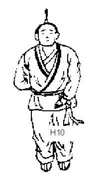 1.3. Án chưởng tẩy tủy (giữ bàn tay, tẩy tủy) : tiếp theo thức trên, tay trái từ từ hạ xuống ngực, bụng (H10). Ý niệm như trên.