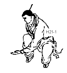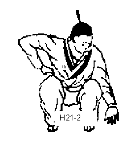 1.1. Khuất quyền liệt yêu (gập quyền, xuyên lưng) : như thức thứ 6, Xuất trảo lượng phiên và Khuất quyền liệt yêu. (H13).