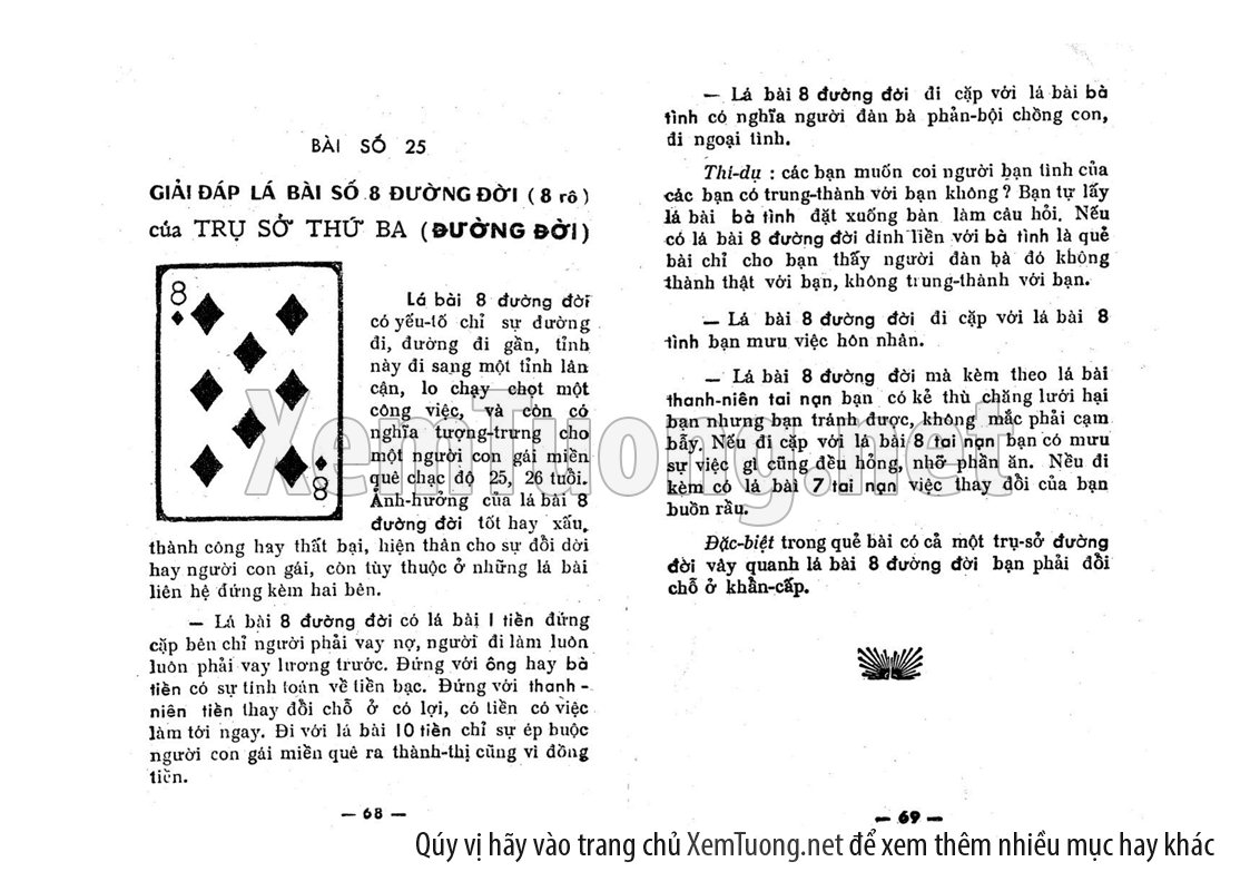 Một lá bài, tức lá bài thứ 31 tượng trưng cho người xem, còn lá bài còn lại tức lá bài thứ 32 tượng trưng cho vợ hay chồng. Nếu chưa có chồng hoặc vợ thì lá bài thứ 32 có thể tượng trưng cho người yêu của người xem.