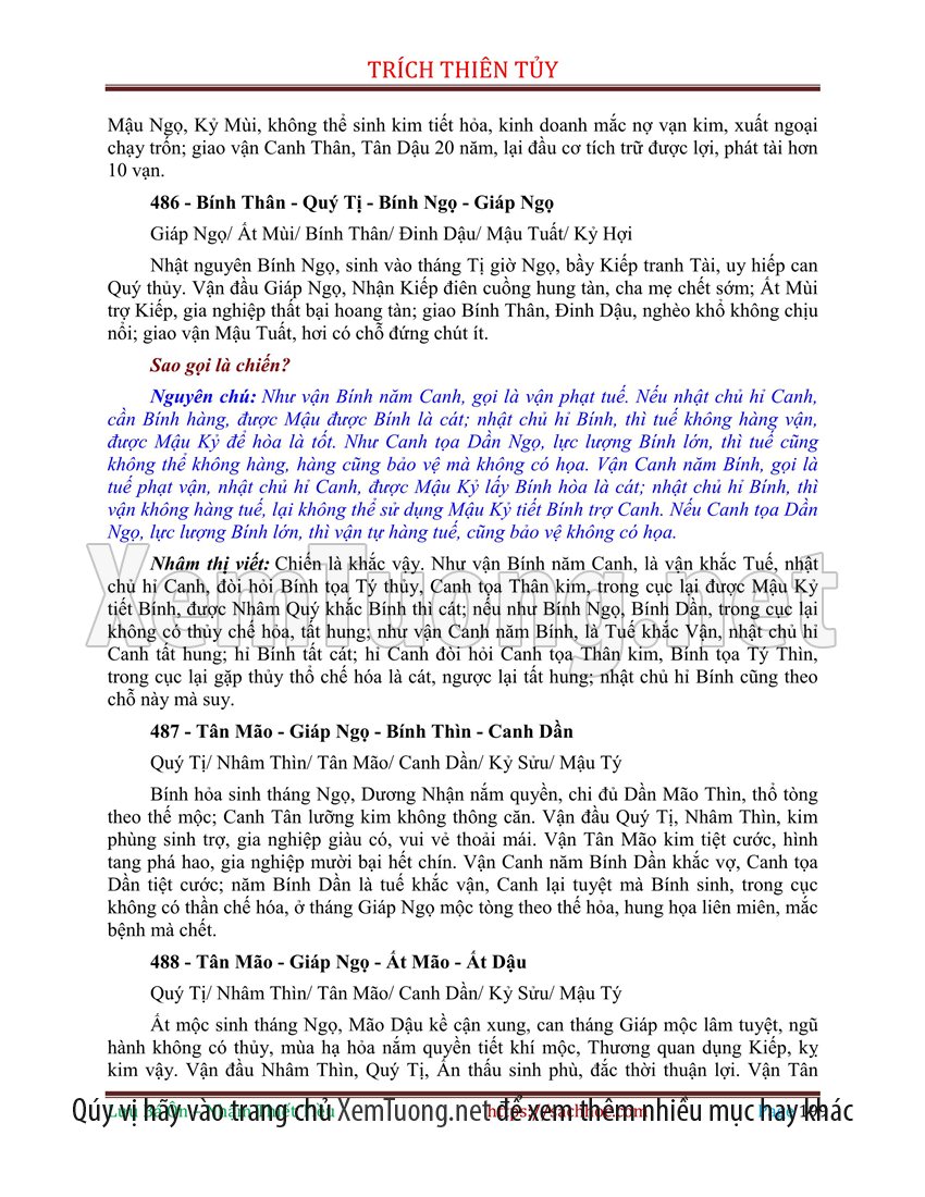 Sách "Trích thiên tủy bình chú" là cuốn sách kinh điển về lý luận của Tử Bình Tứ Trụ. Ở Trung Quốc những người học Tứ Trụ đều coi đây là cuốn sách nền tảng làm kim chỉ nam cho việc học tập và luận giải. Tương truyền do Lưu Bá Ôn thời nhà Minh biên soạn, sau được Nhậm Thiết Tiều thời nhà Thanh bình chú.