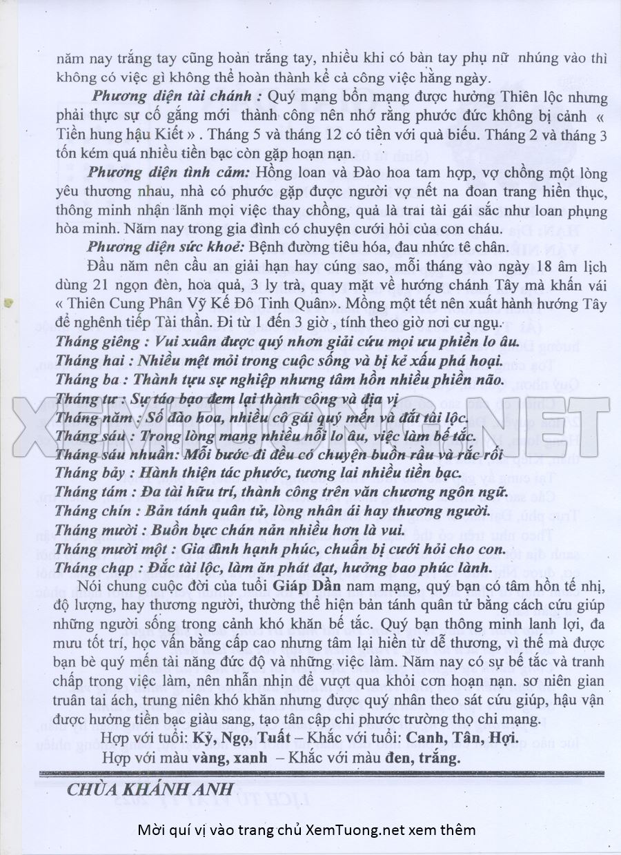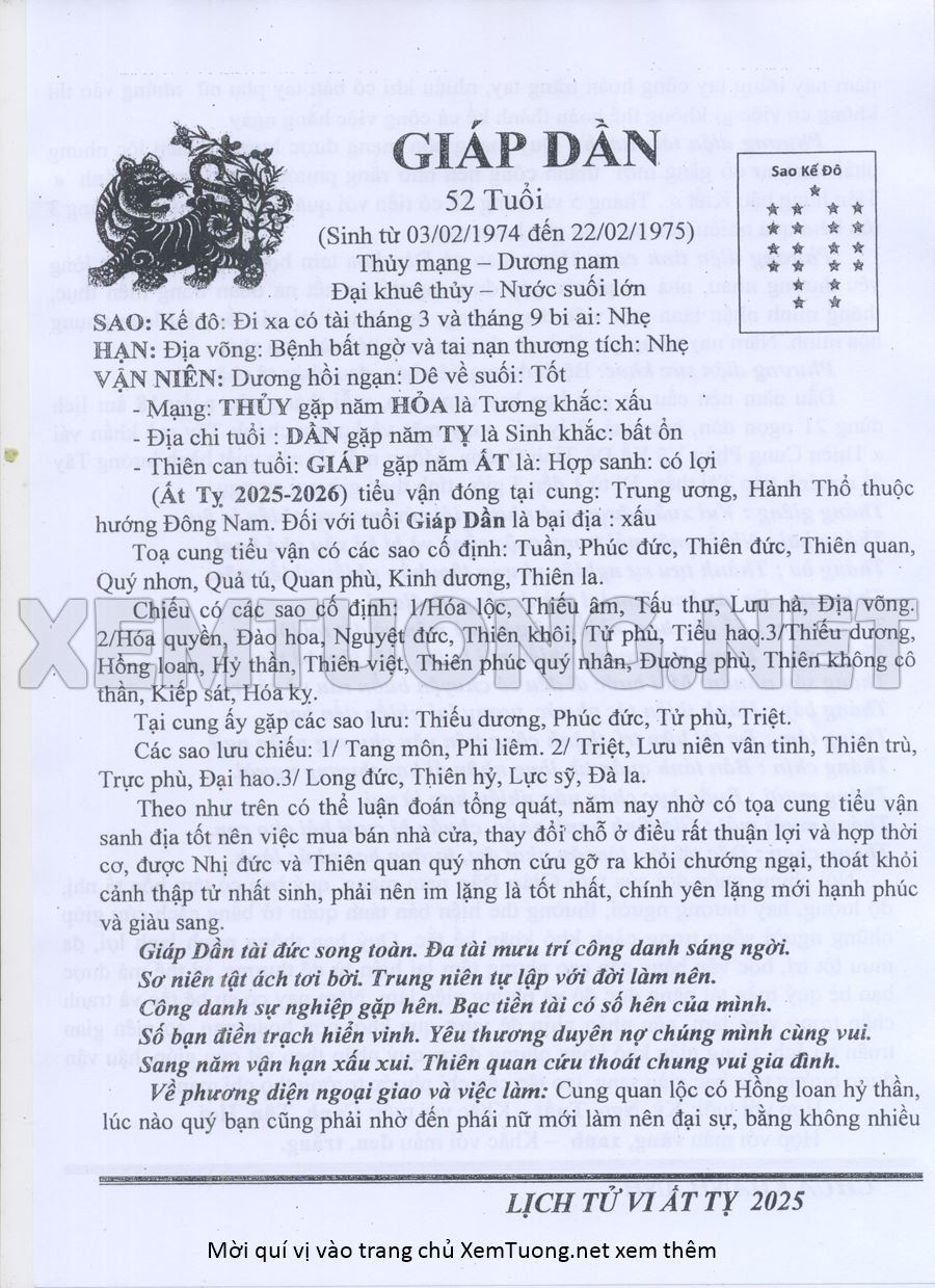 Tử Vi Năm Ất Tỵ 2025 mạng nam GIÁP DẦN