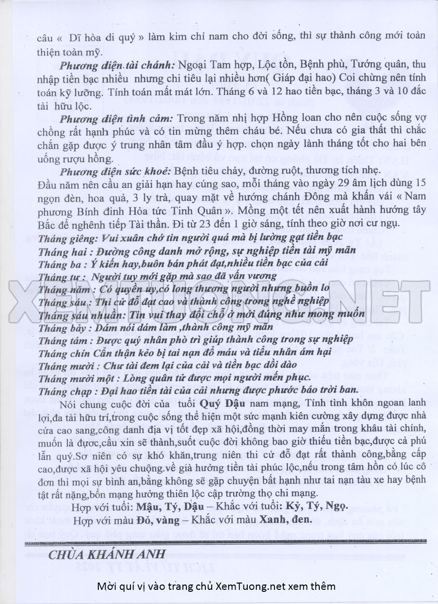 Tử Vi Năm Ất Tỵ 2025 mạng nam QUÝ DẬU