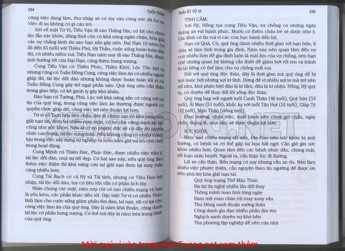(Lưu ý: Thái Ất Tử Vi được chúng tôi scan từ sách, do đó mỗi tuổi sẽ có nhiều trang, quý vị xem xong hãy nhấn vào trang tiếp theo để xem hết phần tuổi muốn xem. Nếu quý vị xem bằng điện thoại thì hãy kéo qua lại để xem phần bị khuất.)