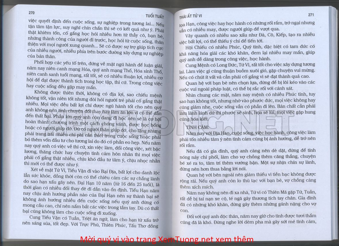 (Lưu ý: Thái Ất Tử Vi được chúng tôi scan từ sách, do đó mỗi tuổi sẽ có nhiều trang, quý vị xem xong hãy nhấn vào trang tiếp theo để xem hết phần tuổi muốn xem. Nếu quý vị xem bằng điện thoại thì hãy kéo qua lại để xem phần bị khuất.)