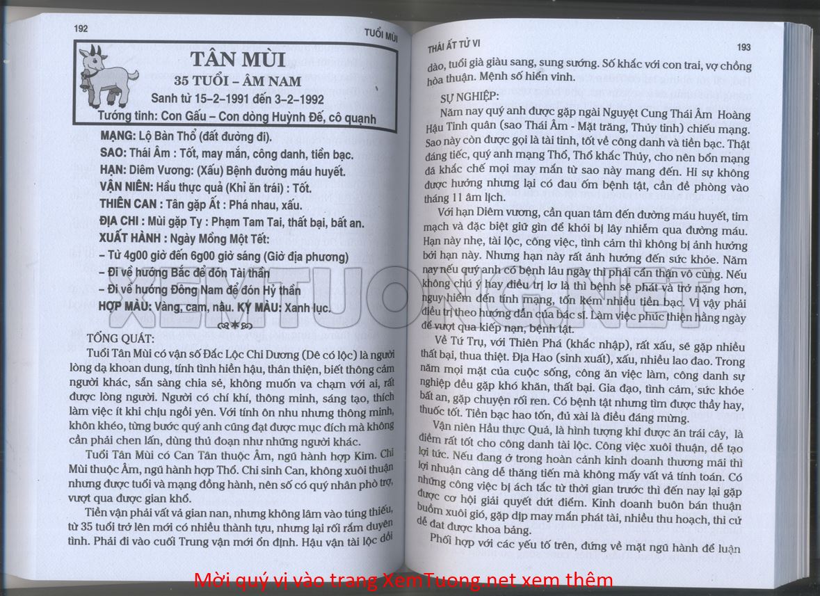 (Lưu ý: Thái Ất Tử Vi được chúng tôi scan từ sách, do đó mỗi tuổi sẽ có nhiều trang, quý vị xem xong hãy nhấn vào trang tiếp theo để xem hết phần tuổi muốn xem. Nếu quý vị xem bằng điện thoại thì hãy kéo qua lại để xem phần bị khuất.)