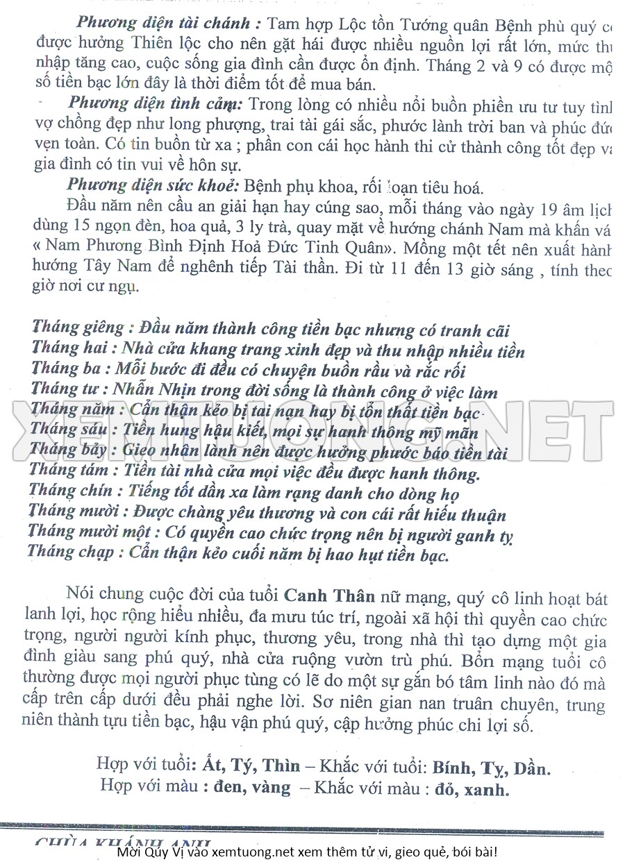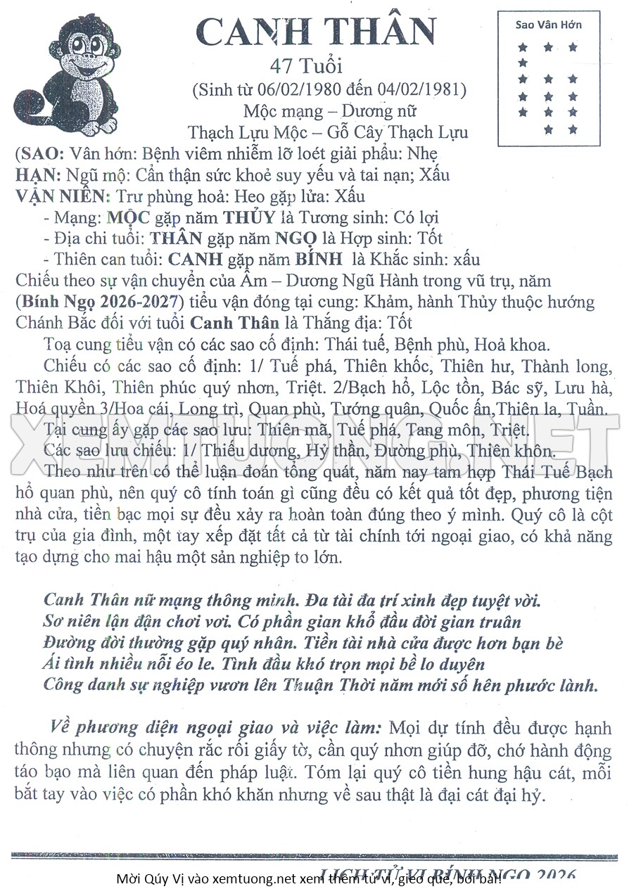 Tử Vi Năm Bính Ngọ 2026 mạng nữ CANH THÂN