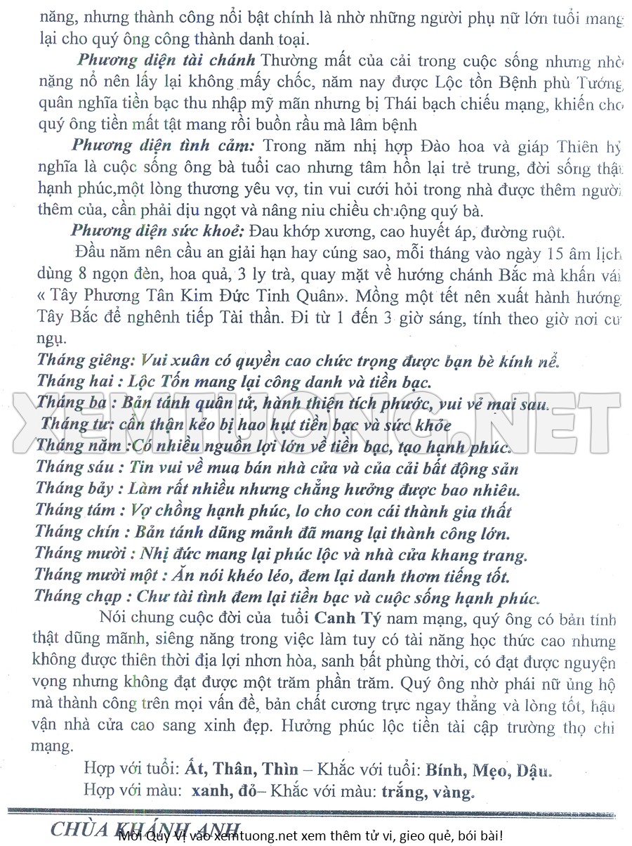 Tử Vi Năm Bính Ngọ 2026 mạng nam CANH TÝ