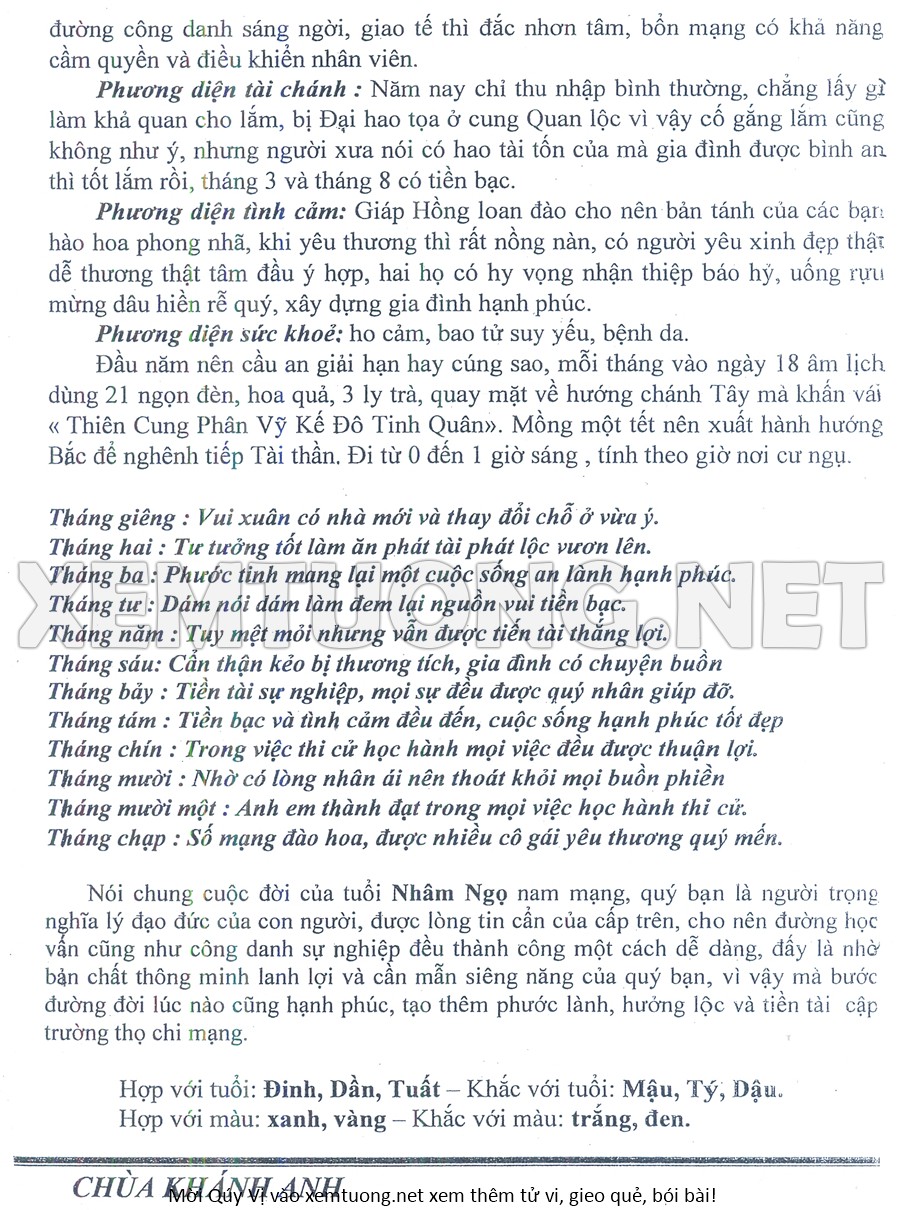 Tử Vi Năm Bính Ngọ 2026 mạng nam NHÂM NGỌ