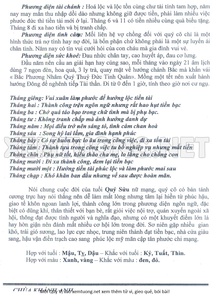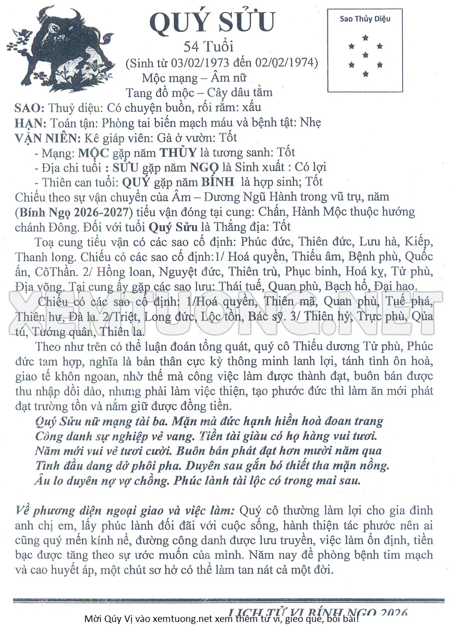 Tử Vi Năm Bính Ngọ 2026 mạng nữ QUÝ SỬU