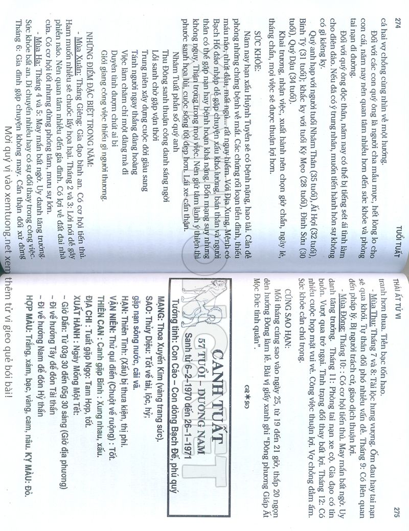(Lưu ý: Thái Ất Tử Vi được chúng tôi scan từ sách, do đó mỗi tuổi sẽ có nhiều trang, quý vị xem xong hãy nhấn vào trang tiếp theo để xem hết phần tuổi muốn xem. Nếu quý vị xem bằng điện thoại thì hãy kéo qua lại để xem phần bị khuất.)