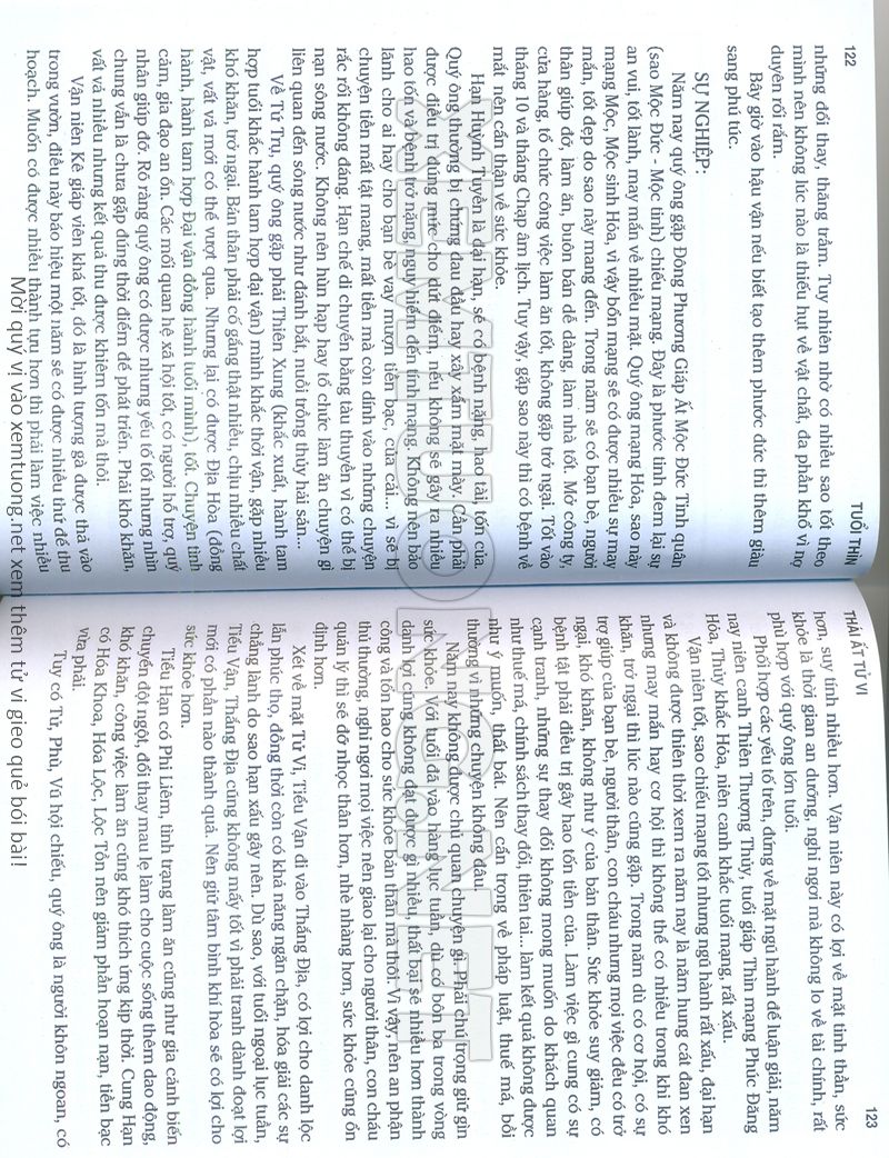 (Lưu ý: Thái Ất Tử Vi được chúng tôi scan từ sách, do đó mỗi tuổi sẽ có nhiều trang, quý vị xem xong hãy nhấn vào trang tiếp theo để xem hết phần tuổi muốn xem. Nếu quý vị xem bằng điện thoại thì hãy kéo qua lại để xem phần bị khuất.)