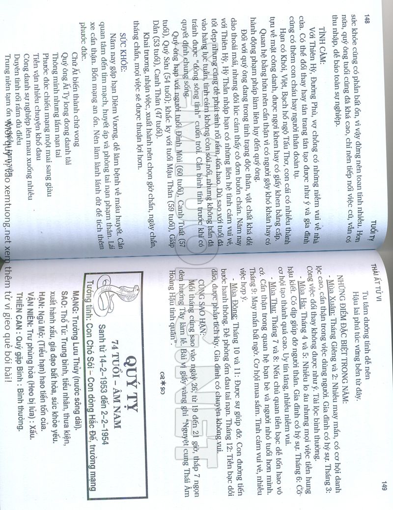 (Lưu ý: Thái Ất Tử Vi được chúng tôi scan từ sách, do đó mỗi tuổi sẽ có nhiều trang, quý vị xem xong hãy nhấn vào trang tiếp theo để xem hết phần tuổi muốn xem. Nếu quý vị xem bằng điện thoại thì hãy kéo qua lại để xem phần bị khuất.)