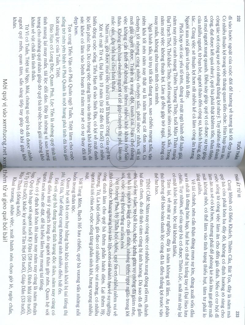 (Lưu ý: Thái Ất Tử Vi được chúng tôi scan từ sách, do đó mỗi tuổi sẽ có nhiều trang, quý vị xem xong hãy nhấn vào trang tiếp theo để xem hết phần tuổi muốn xem. Nếu quý vị xem bằng điện thoại thì hãy kéo qua lại để xem phần bị khuất.)