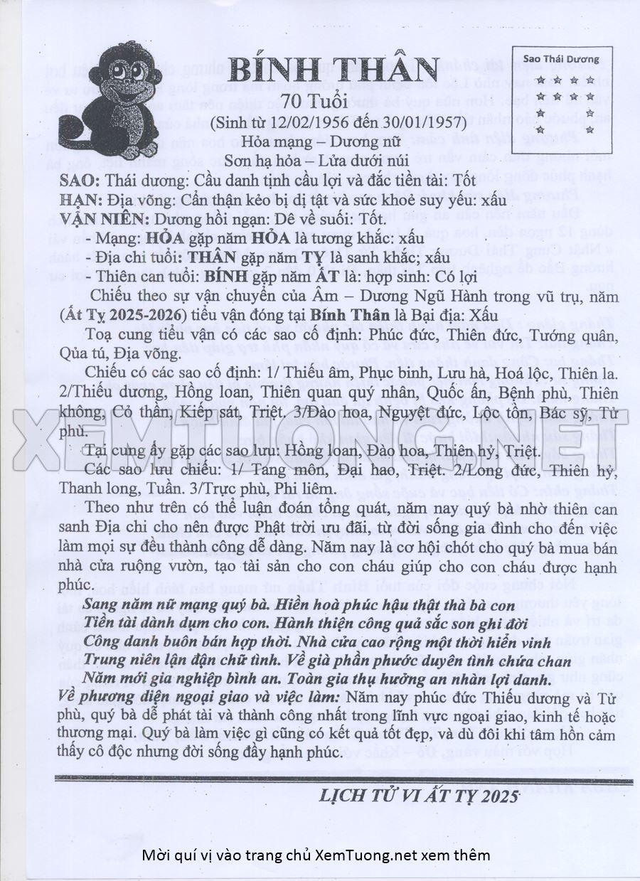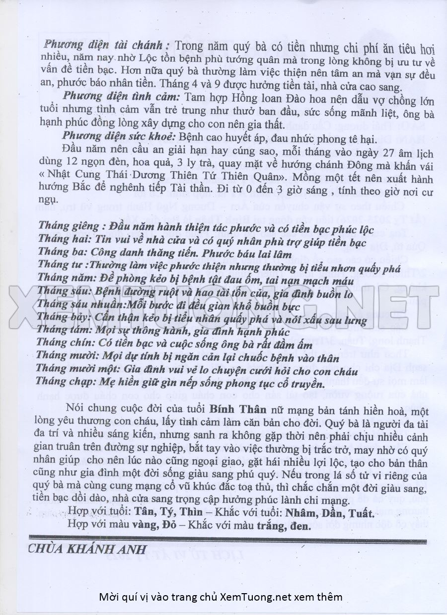 Tử Vi Năm Ất Tỵ 2025 mạng nữ BÍNH THÂN