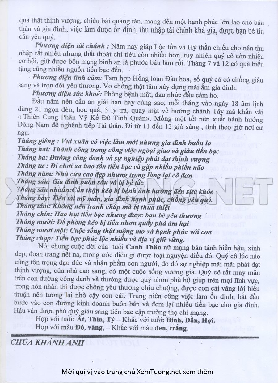Tử Vi Năm Ất Tỵ 2025 mạng nữ CANH THÂN