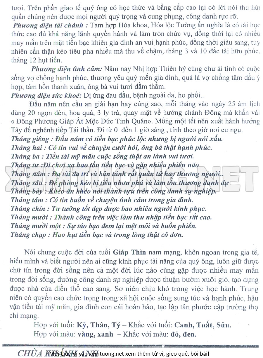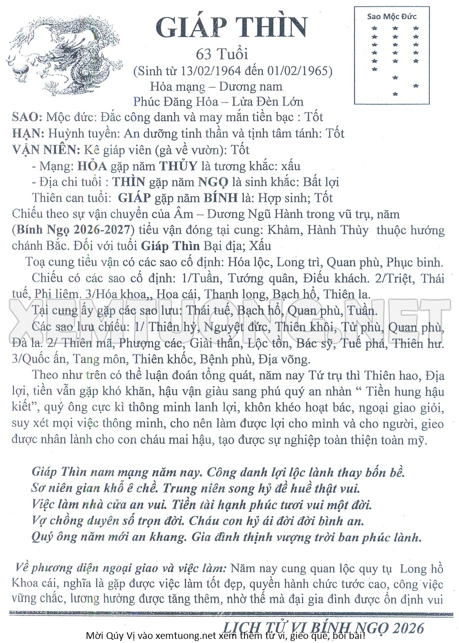 Tử Vi Năm Bính Ngọ 2026 mạng nam GIÁP THÌN