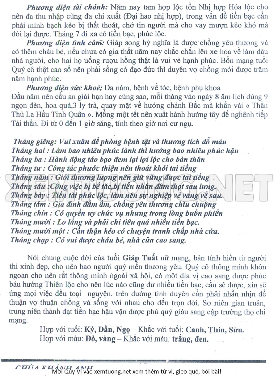 Tử Vi Năm Bính Ngọ 2026 mạng nữ GIÁP TUẤT