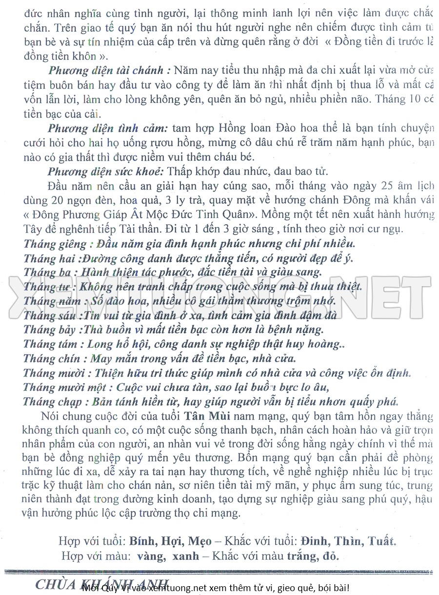 Tử Vi Năm Bính Ngọ 2026 mạng nam TÂN MÙI