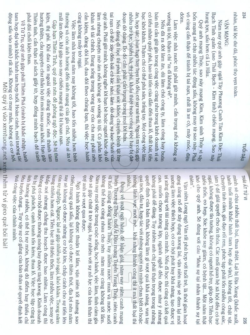 (Lưu ý: Thái Ất Tử Vi được chúng tôi scan từ sách, do đó mỗi tuổi sẽ có nhiều trang, quý vị xem xong hãy nhấn vào trang tiếp theo để xem hết phần tuổi muốn xem. Nếu quý vị xem bằng điện thoại thì hãy kéo qua lại để xem phần bị khuất.)