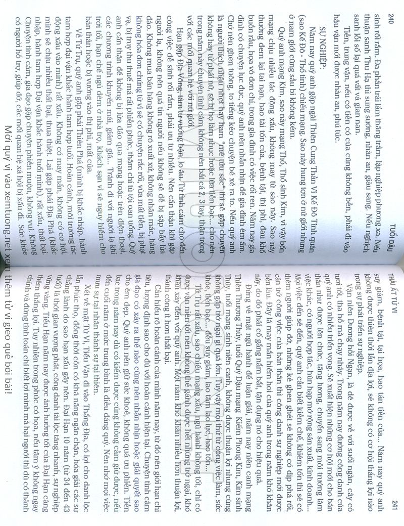 (Lưu ý: Thái Ất Tử Vi được chúng tôi scan từ sách, do đó mỗi tuổi sẽ có nhiều trang, quý vị xem xong hãy nhấn vào trang tiếp theo để xem hết phần tuổi muốn xem. Nếu quý vị xem bằng điện thoại thì hãy kéo qua lại để xem phần bị khuất.)